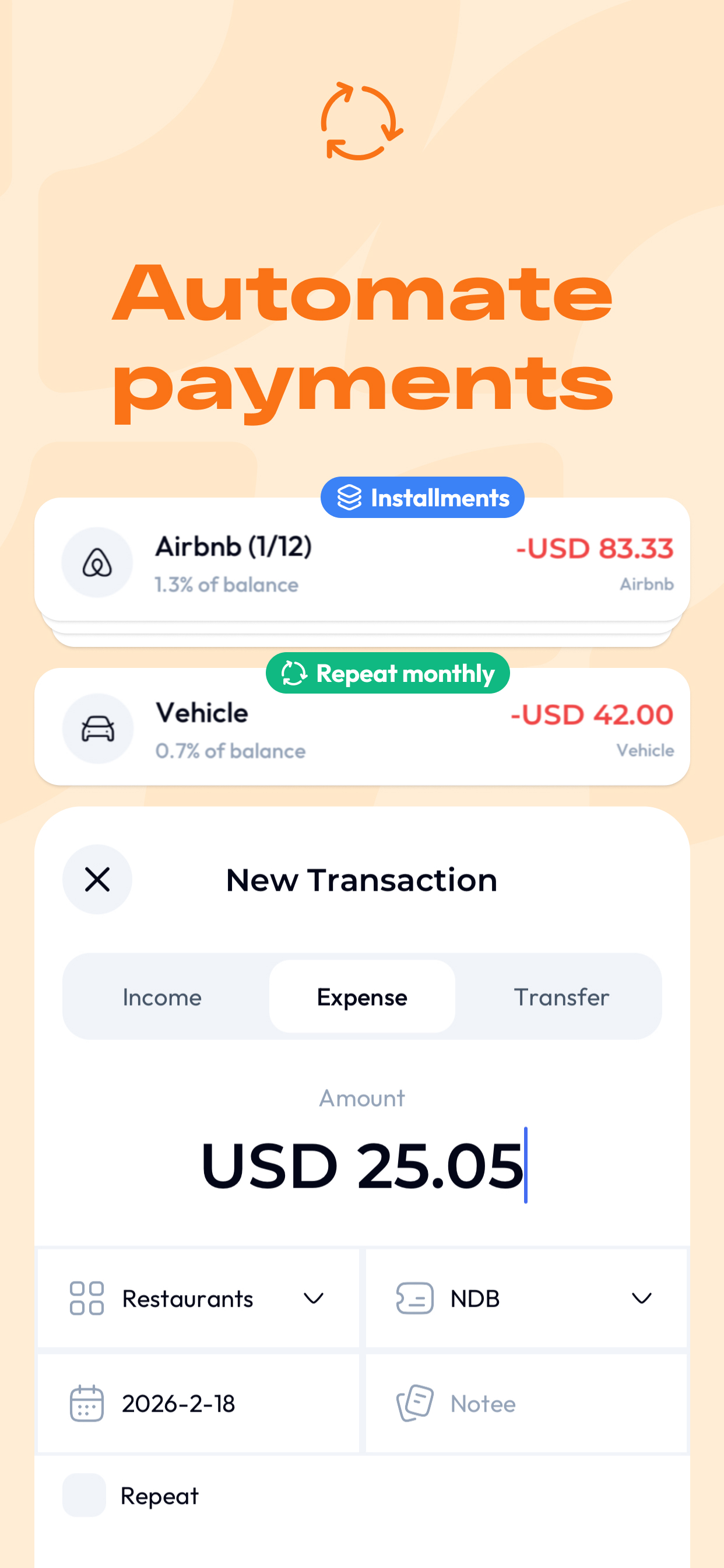 Take total control of your finances. Our app helps you track every dollar, manage multiple credit card balances, and automatically organize recurring payments and installments. Visualize your spending with smart analytics and never miss a due date again. Whether you're saving for a goal or paying off debt, we make managing money simple and stress-free.